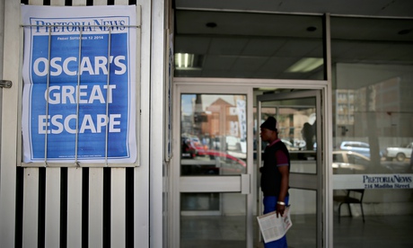 A newspaper headline after Oscar Pistorius was convicted of culpable homicide, 12 September 2014. Photograph: Christopher Furlong/Getty Images